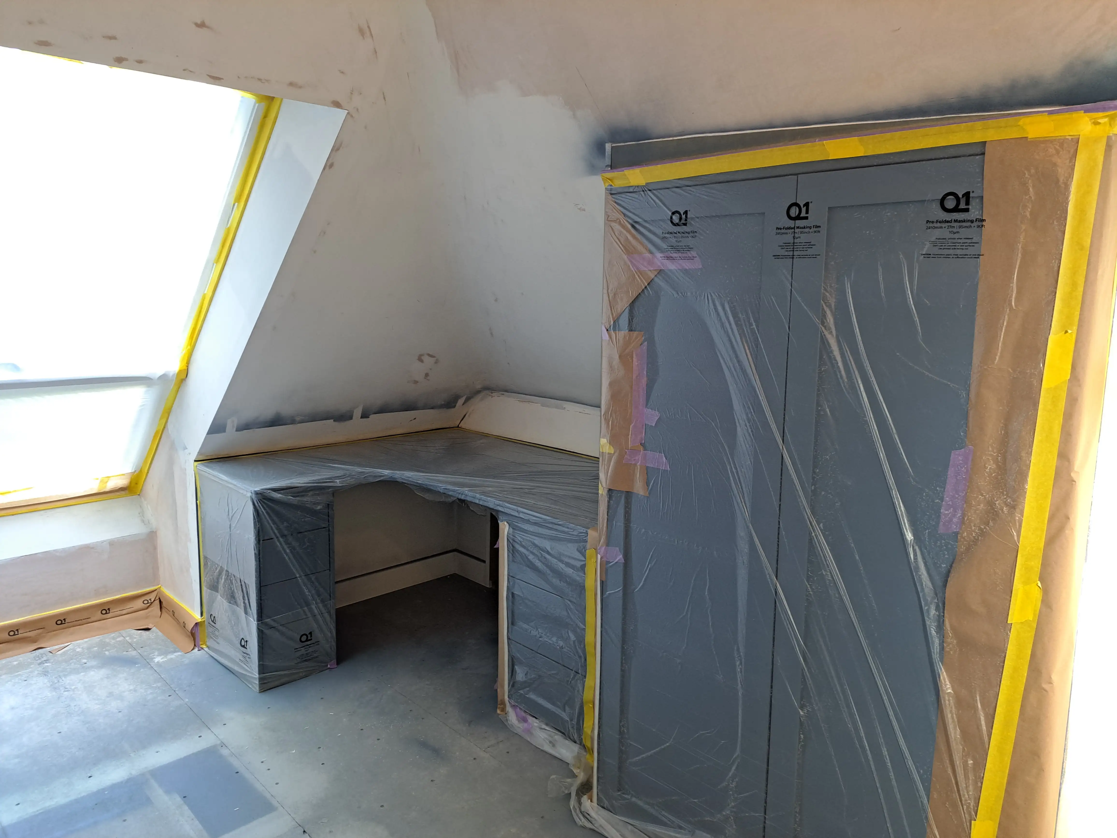 Professional airless spray painting using the Airtech T5 system with gravity fed spray guns — ideal for kitchen unit re-sprays and more.